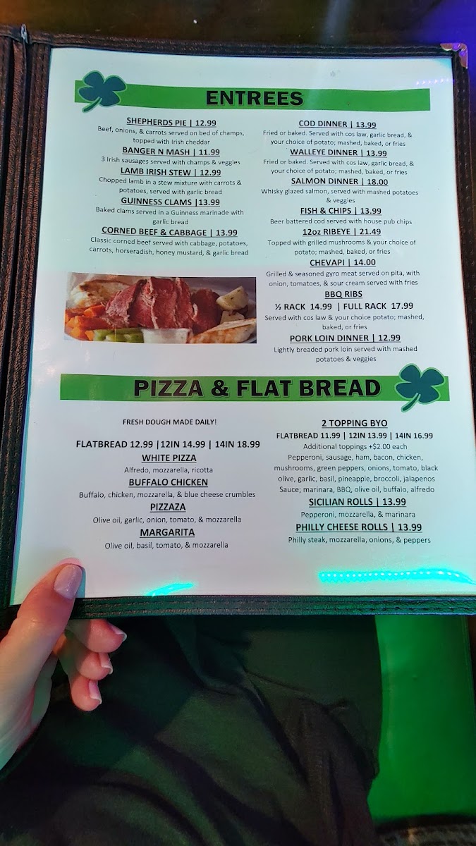 Murphy's recipe Corned beef and cabbage. potatoes, carrots served with horseradish or honey mustard sauce & garlic bread.